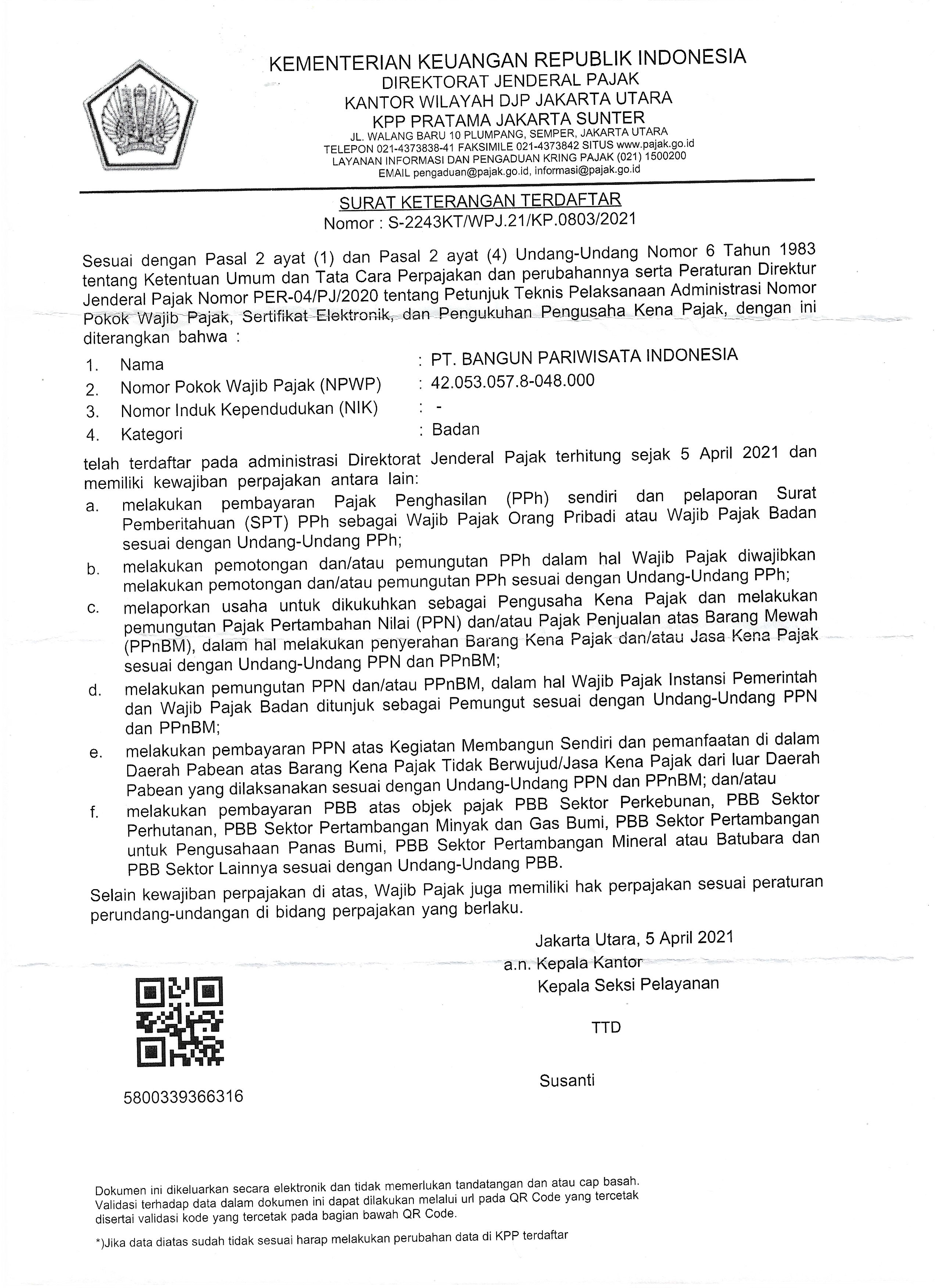 Tanda Daftar Pajak Perusahaan